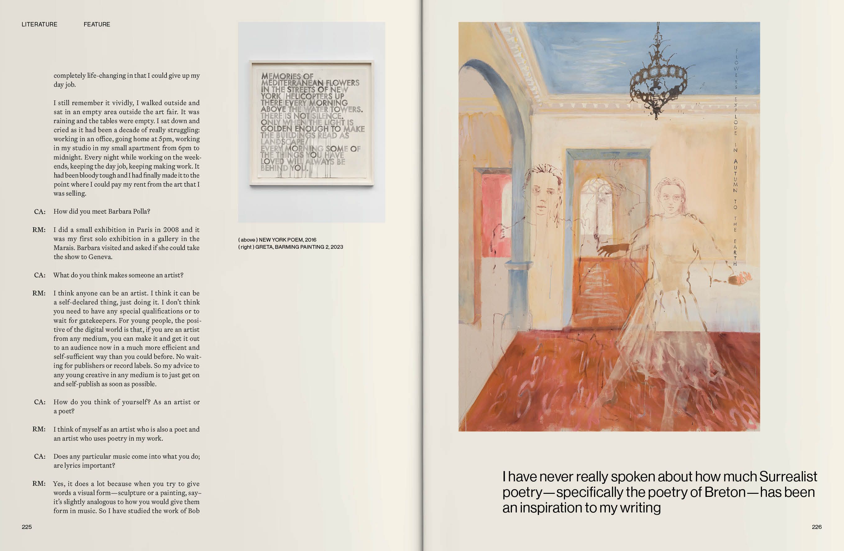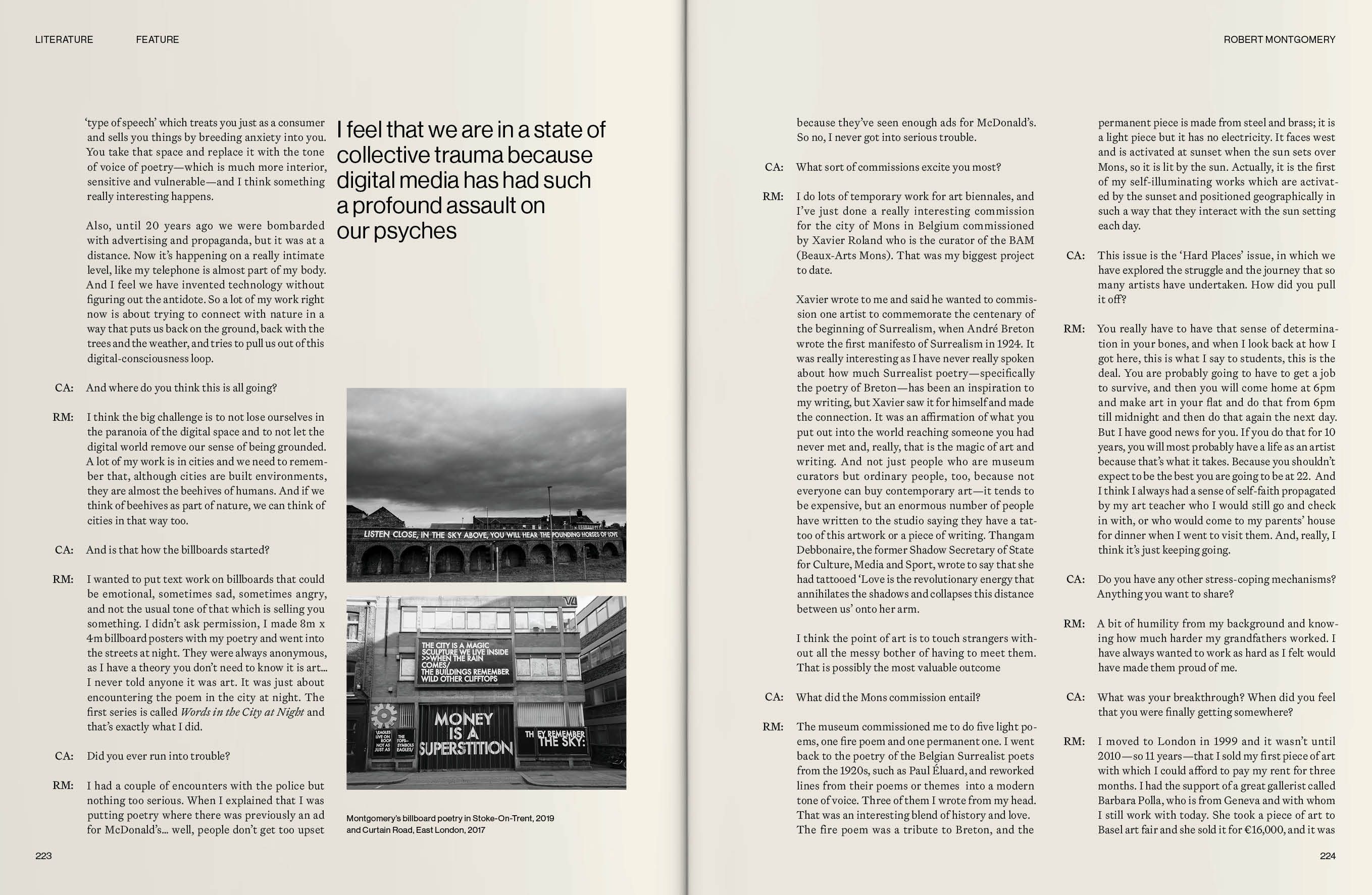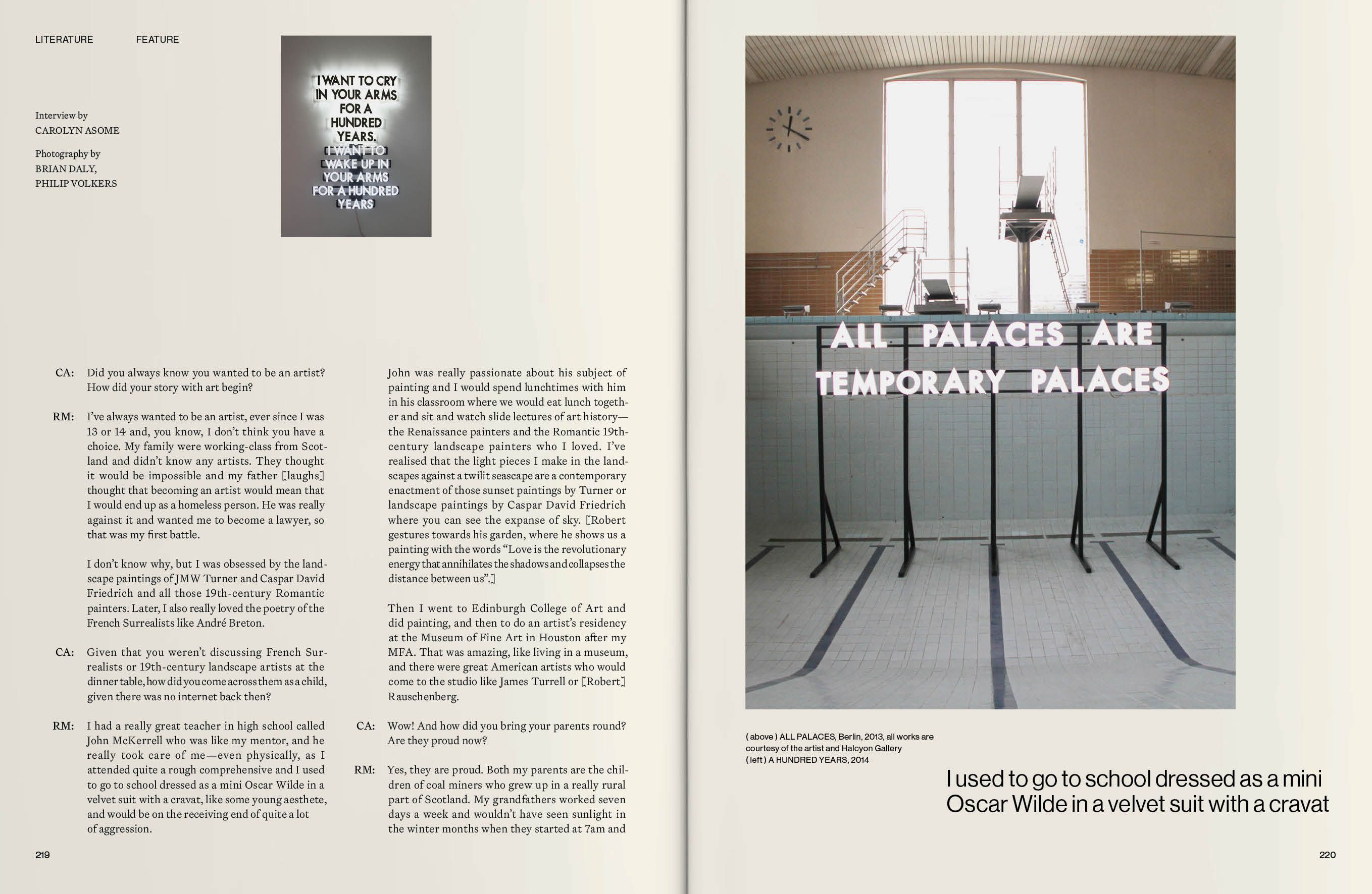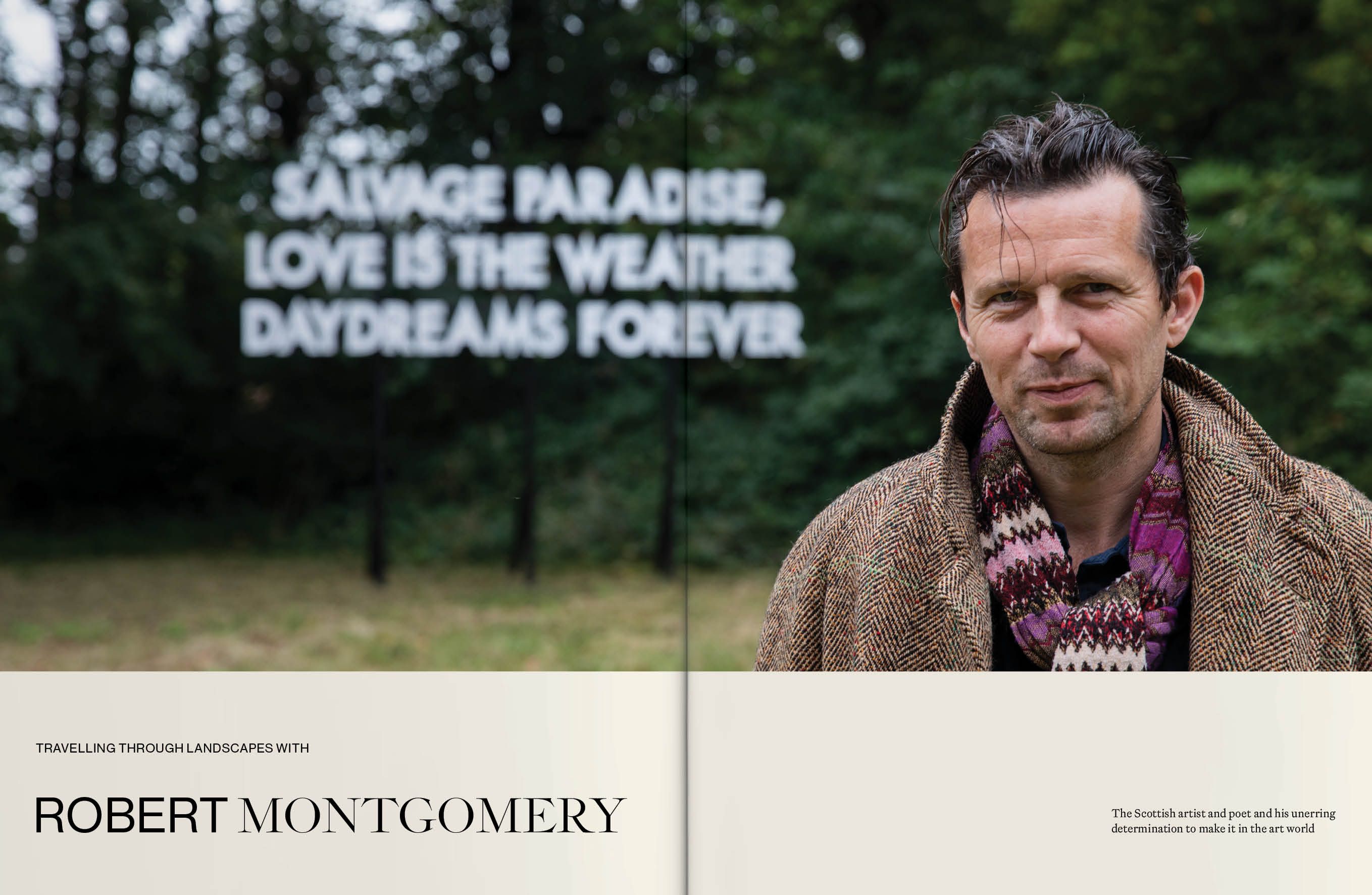 The people I have chosen to feature are all brave enough to share not just their work, but their whole journey: the highs and lows, the hardship and lessons learned, the rejection, the doubt, the moments they almost quit. They are people whom I admire for their talent, their knowledge, their discipline, their devotion and, most importantly, their endurance. Tom Broughton opens up about how broke he was before his Cubitts spectacle brand finally took off, chanson singer Vladimir Kornéev shares how he overcame war trauma and a stutter, and the artist and poet Robert Montgomery admits it took 11 years before he sold his first artwork. It is by overcoming such hardships that our artists are where they are today.